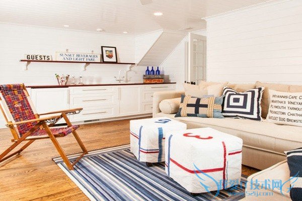 白色不仅可以是冷色,当与相似的米白色和木制地板凑在一起的时候也可以是温暖的。在低矮的空间里白色在视觉上拔高了空间。