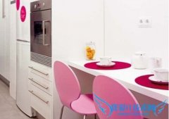 家居指南:8款橱柜巧妙设计一边靠着橱柜,一边靠着墙壁架起一块搁板。颜色是和橱柜和墙一样的白色,使这张早餐小桌完全融入了整体橱柜中。搭配上桃红的餐垫和粉色的...