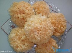 看品相一级品:耳片色泽呈金黄色,有光泽,朵大体轻疏松,肉质肥厚,坚韧而有弹性,蒂头无耳脚、黑点,无杂质等。干耳浸水后,膨胀率可达10倍以上。二级品:耳片色白...