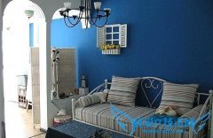 蓝+白的地中海风格,希腊的拱门和白色沙滩,西班牙蓝色海岸线,被移植到主人的小屋,属于经典的地中海风格装修。客厅:蓝色背景墙,仿若西班牙的蓝色海岸线,白色圆...