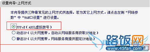 3.然后会进入以太网接入方式界面,选择PPPoE(DSL虚拟拨号)方式,点击下一步。