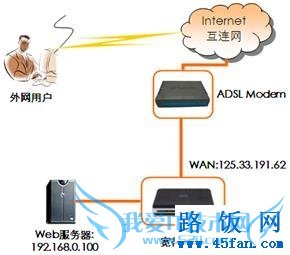 注:外网用户输入的是路由器WAN接口的IP地址125.33.191.62,而不是内部计算机的IP地址192.168.1.100。