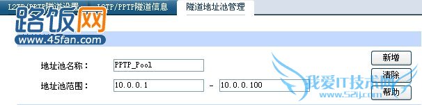 1、配置PPTP隧道地址池:地址池名称随意,便于记忆就好。地址池范围填写内网私有地址,如下图所示: