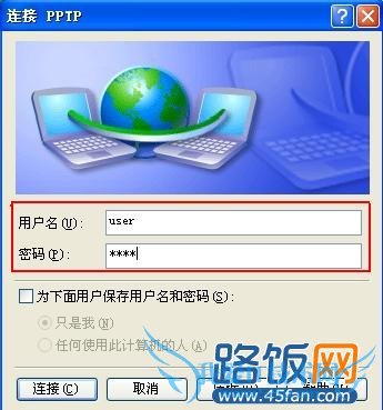 (5)填入用户名密码,点击“连接”按钮进行PPTP拨号,拨号成功后就可以直接访问北京总部内网文件服务器。