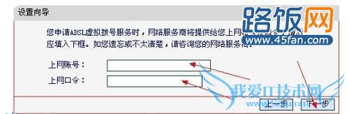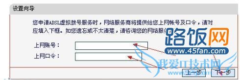 接下来输入由ISP提供的上网贴及口令,输入完成后,点击下一步,最后单击保存即可。