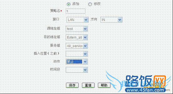 2、在“防火墙”—“访问控制策略”里面添加一条针对指定主机禁止上网的策略。