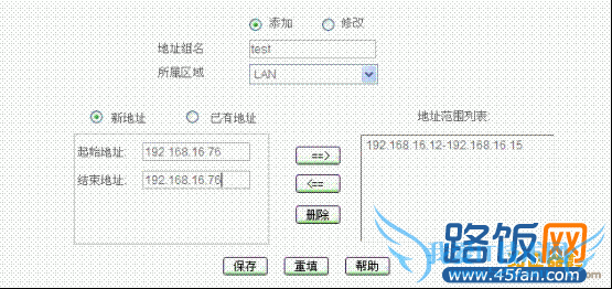1、在“防火墙”—“地址组”里面,添加一个IP地址组,将不允许上网主机的IP地址全部添加进去: