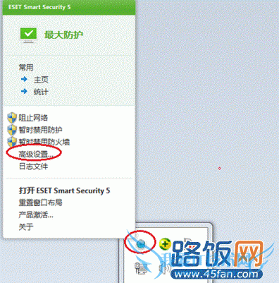 如果进不去,那么我们就右击杀毒软件ESET,弹出菜单中选择高级命令的选项。