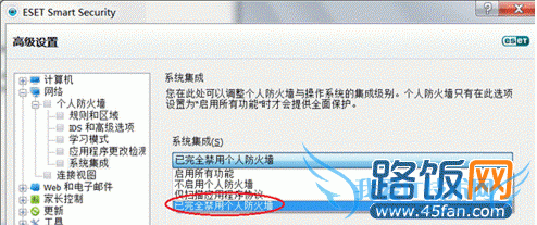 接着,在右边选择“系统集成”目录下的的“已完全禁用个人防火墙”;