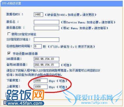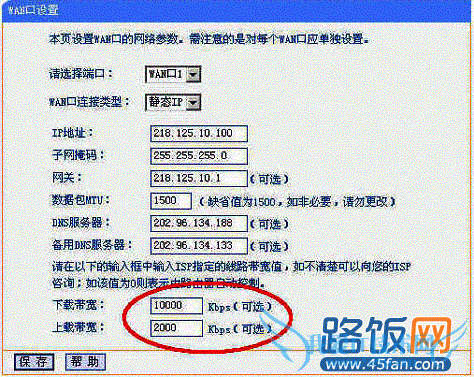 注意:上载和下载带宽要根据当前总带宽值合理配置,不可过高,也不可过低。