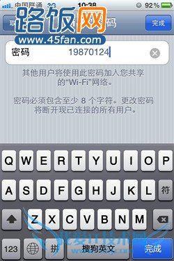 5、设置完所需密码后,点击完成。这样就完成了iPhone4手机变身无线路由器的操作步骤。