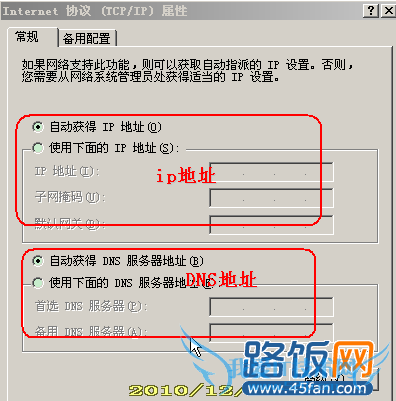 如果局域网采用自动方式上网,则将IP地址和DNS地址都设置为自动即可。