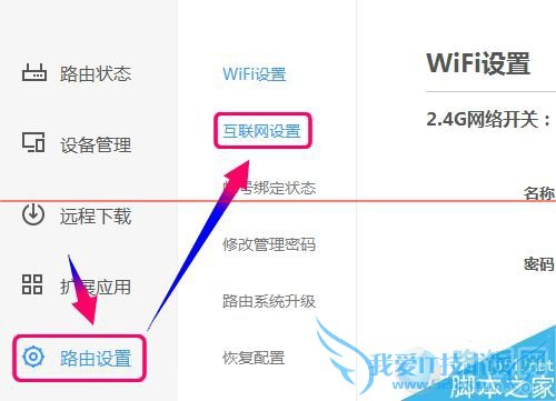 3、当登录新路由的管理界面后,依次点击[路由设置]->[互联网设置]