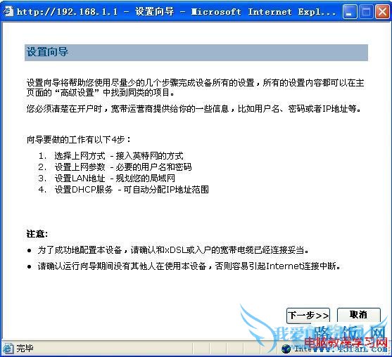 1、将modem、路由器和电脑连接好后,在IE栏中输入:192.168.1.1(金浪及TP等大多数品牌),(tengda的是192.168.0.1),敲回车后将会出现