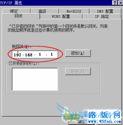 网关:在新网关里面填写:192.168.1.1 点击添加。