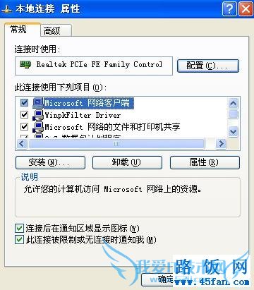 在该设置窗口的“常规”选项设置页面中,选中目标网卡设备,并单击对应页面中的“配置”按钮,进入目标网卡设备的属性配置界面;单击其中的“高级”选项卡.