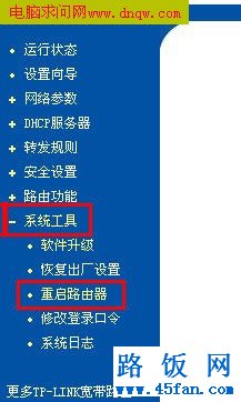 好了到了,这里路由器里的配置一切都设置好了,现在我们只有重起路由器就OK了.点系统工具,重起路由器,几秒钟后 就好了, 请看图片13