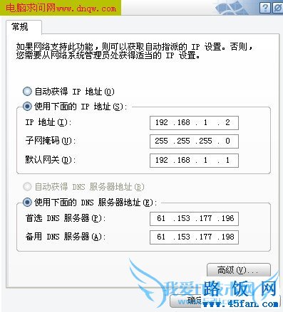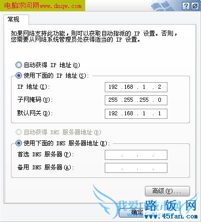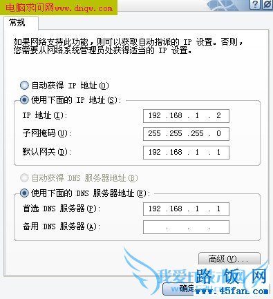 如果不清楚当地的DNS地址,也可以将首选的DNS设置为192.168.1.1 也就是网关了,备用的无须填写.