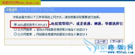 这里选择adsl虚拟拨号,我们大多都是选择它的, 其他的静态那是专线用户选择的, 我们这里不做详细介绍,知道 宽带用户,铁通,网通等虚拟拨号用户,选择它就行了,然后下一步请看图片10