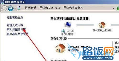 接下来我们要做的就是将其信息与电脑的参数对比图并你打开网络共享中心,点击更改适配器设置。