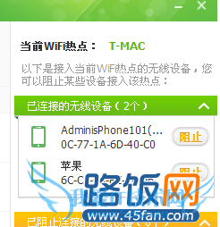 6、最后此功能还能够显示当有wifi热点及已连接的无线设备信息。