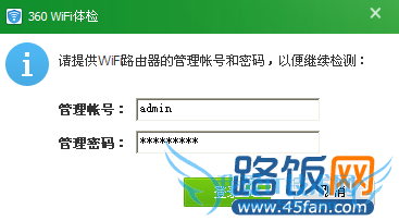 4、然后会弹出路由器管理帐号及密码,输入正确的路由器密码登陆到体检界面,如下图所示: