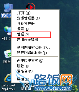 1、回到桌面,右击“我的电脑”》“管理”,如下图红色部分所示: