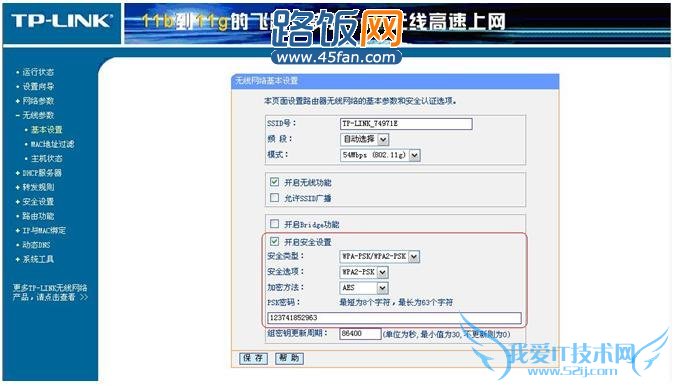图:TP-LINK的无线路由器的WPA-PSK/WPA2-PSK安全设置