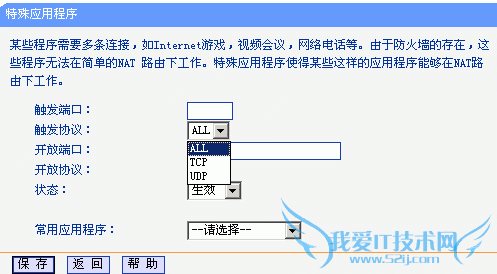 触发协议也是有all、tcp和udp三个选项,如果不知道是tcp或者udp,可以选择all