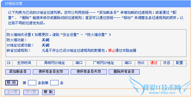 在安全设置栏选择ip过滤会出现上图的窗口,点击添加新条目