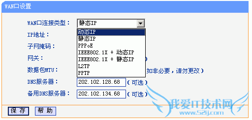 大家应该看到了上图wan口连接类型有7个可供选择,根据自己的需要选择即可。