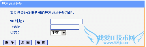 在上一步点击了添加后,会转到上图的窗口,在这里输入想要绑定的mac和ip地址就可以了还可以选择是否生效呵呵。对于限制上网时间段的朋友有用