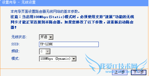经过以上的设置之后,在前两个步骤点击下一步(如果选择的是动态ip则直接跳转到这里)都会跳转到如上图的窗口。在这里我们可以选择路由是否开启无线状态,默认是开启的。SSID是无线局域网用于身份验证的登录名,只有通过身份验证的用户才可以访问本无线网络