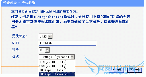 大家应该发现了108m模式有两个,一个是Static模式,另外一个是Dynamic模式。二者一个为静态的一个为动态的,注意如果选择了静态108m模式,必须是支持速展tm功能的无线网卡才可以连接,建议选择动态或54m自适应