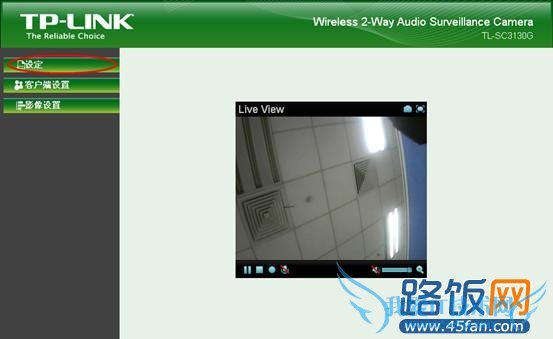 步骤三:设置无线连接。点击确定后跳至IP Camera的首页主界面,点击设定后进入设置界面。