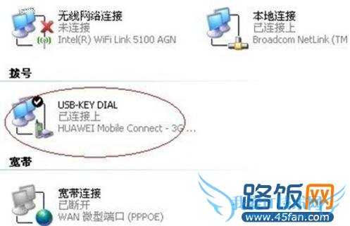 第二步:其中一台要设为用无线网卡拨号的电脑,鼠标右键点击桌面的网上邻居—— 属性,其中有一个“USB-KEY DIAL” 的图标(那是无线网卡连接的图标),如图: