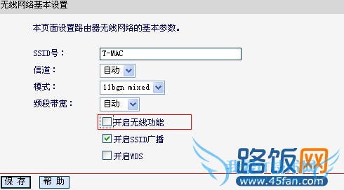 3、进入无线路由器WEB管理界面后,点击左侧的无线设置》将无线功能前面的勾选取消,如下图所示: