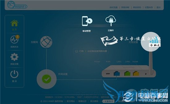极路由采用基于OpenWrt二次开发的HiWiFi嵌入式智能系统,采用图形化界面引导,新手两三步就能设置出正确的路由配置。