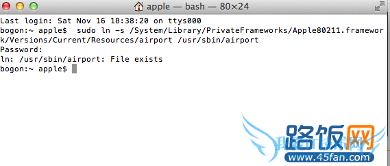 Ê×ÏÈ´ò¿ªÖÕ¶Ë£¬ÊäÈësudo ln -s /System/Library/PrivateFrameworks/Apple80211.framework/Versions/Current/Resources/airport /usr/sbin/airport
