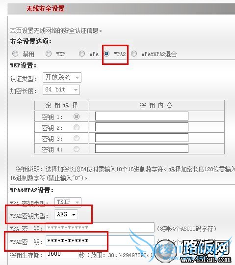 - 进入到【安全设置】,这里面主要是用来设置无线访问密码的,路由器品牌不同,但设置的内容基本一致,参照下图。