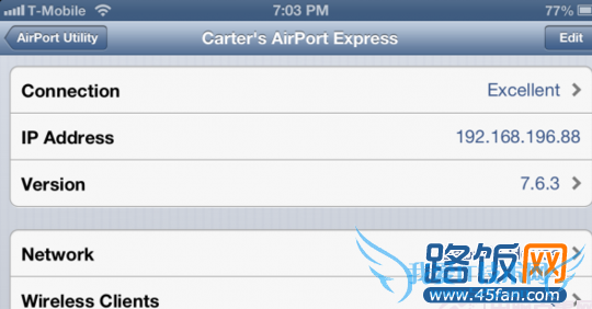 点击屏幕右上角的“编辑”按钮,即可对这台AirPort的各种选项进行调整。随着用户使用的AirPort基站型号不同,画面显示的内容也会相应有所变化。