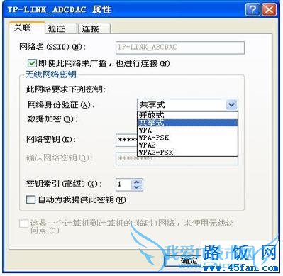1. 无线路由器设置WEP加密,安全选项选择的是“共享密钥”,如下图所示: