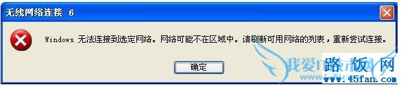 无线连接提示“windows无法连接到选定网络,网络可能不在区域中