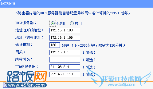 在企业网络里,网管为了省事,绝大部分都采会DHCP自动分配IP地址方式,而实际上因为地址租约到期而频繁获取IP地址的问题,故而导致无线网络不稳定。要想解决这个问题,最好还是采用手工设置IP地址来解决。如果局域网中电脑数量不多,尽量不要开启DHCP服务。如下图所示: