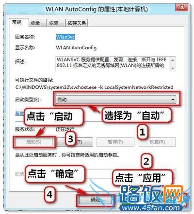 如果要此服务开机以后自动运行的话,右击此服务选择“属性”,把启动类型选择为“自动”,然后点击“应用”,点击“启用”,点击“确定”按钮关闭设置窗口。这样重新启动电脑此服务即可自动运行。设置步骤可参考下图所示: