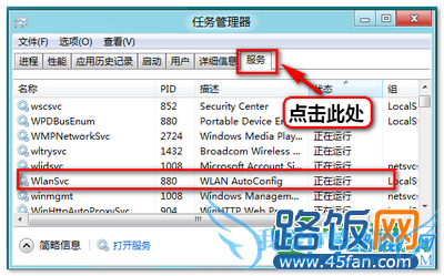 (3)同时按下CTRL,Shift和ESC三个按键,打开任务管理器,点击“服务”选项卡;