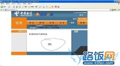然后点击管理标签页,设备管理项保存/重启分项,点击重启,等待重启后就会发现,不用拨号也可以上网了。