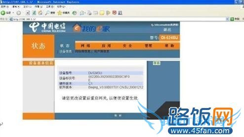 下面的这步最重要,如果用说明书给出的用户名和密码进入,就会看到被电信屏蔽后的画面而没有办法更改任何设置,大家以用户名:telecomadmin,密码 nE7jA%5m(貌似电信的超级密码)登陆就会看到如下管理员画面: