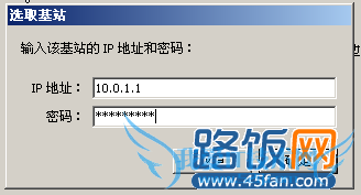 5、在选取基站下(类似于普通路由器登陆用户名和密码框)中输入IP地址和密码,IP地址10.0.1.1,密码pubilc。如下图所示: