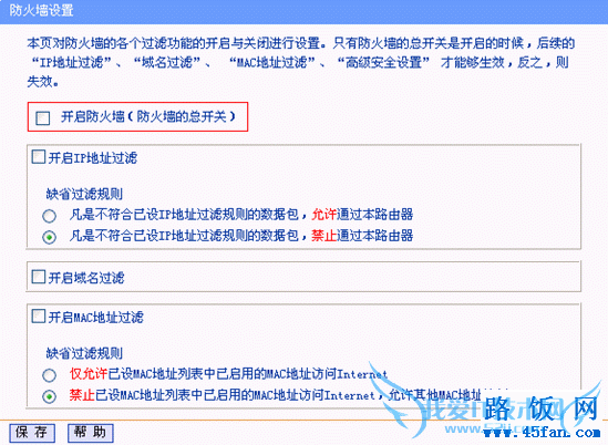 四、检查路由器防火墙中过滤规则是否过滤了该无线网卡。如果设置了过滤规则,则建议先将防火墙开关关
